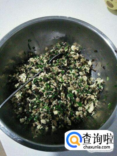 然后把切好的小白菜、香菇、鸡蛋混合在一起,加入适量的盐、耗油、葱姜蒜等腌制一段时间,香菇素馅饺子馅就做好了。