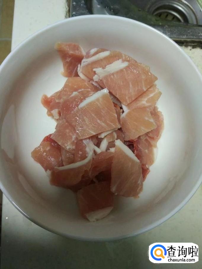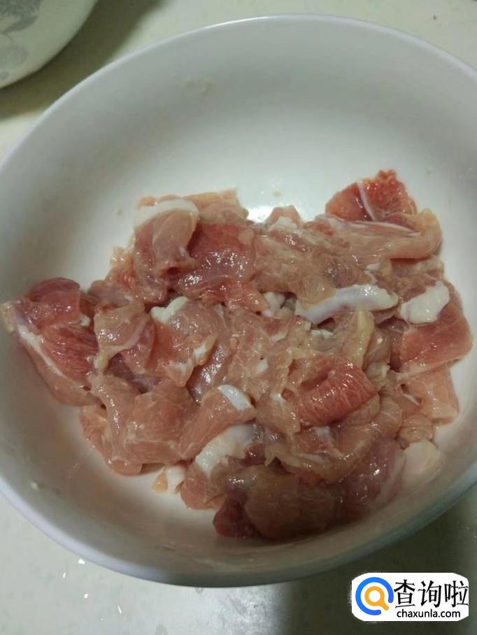 瘦肉切片,用淀粉和食盐码味