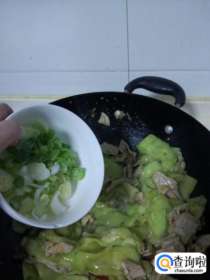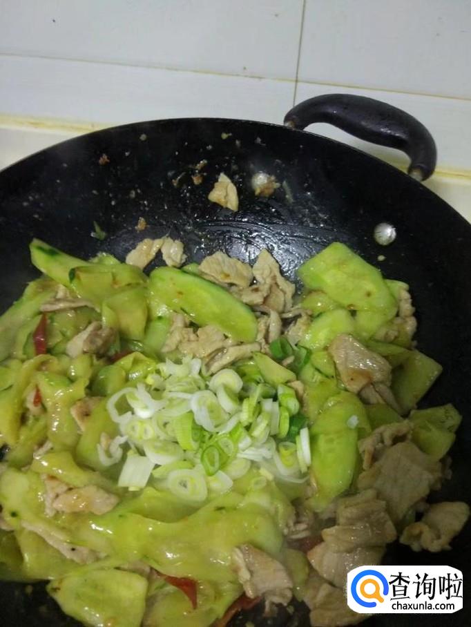 黄瓜炒熟后放入大葱碎