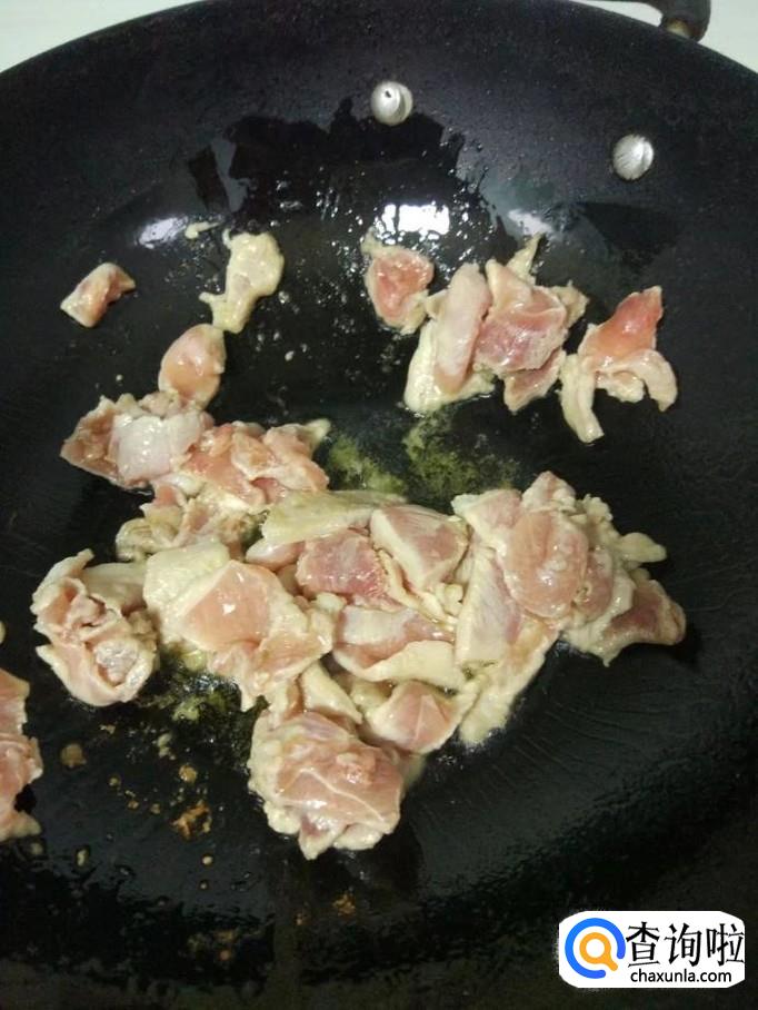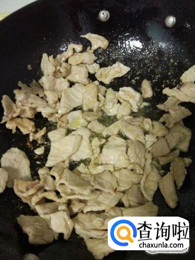 热锅下油,放入准备好的肉片,进行翻炒