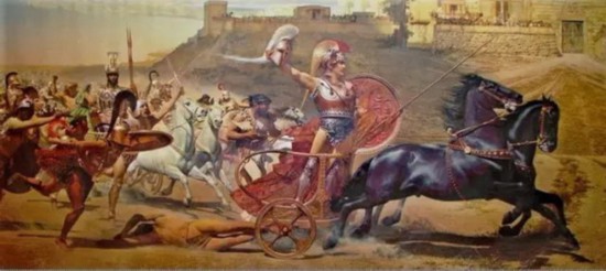 《伊利亚特》(ΙΛΙΑΣ,Ilias,Iliad, 又译《伊利昂记》)。全诗共15,693行,分为24卷,主要内容是叙述希腊人远征特洛伊城的故事。它通过对特洛伊战争的描写,歌颂英勇善战、维护集体利益、为集体建立功勋的英雄。《伊利亚特》是重要的古希腊文学作品,也是整个西方的经典之一。