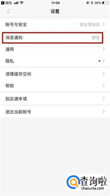 接着点击通知提醒设置,如下图所示。