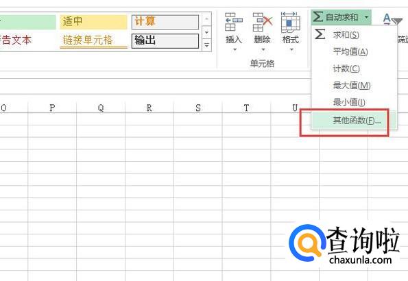 接下来点击自动求和的下拉框,选择其他函数选项,如下图所示