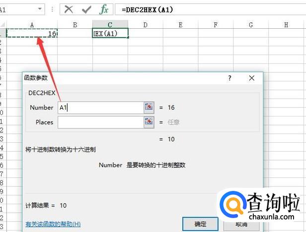 接下来在弹出的转化界面中我们在Number输入框中输入十进制数字的单元格编号,如下图所示