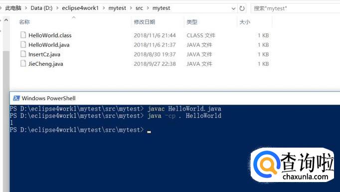 输入命令 java -cp . HelloWorld,回车,输出结果