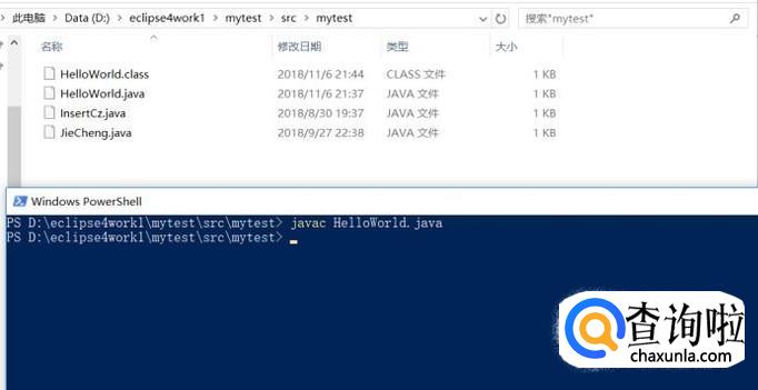 输入命令javac HelloWorld.java,回车,出现下图所示编译后的class文件
