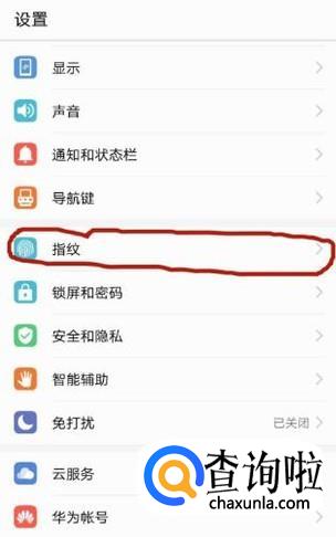 在设置页面,找到“指纹”选项,点击并进入,如图所示。