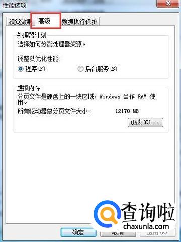在性能选项里点击下高级的功能会来到处理器界面中,如图