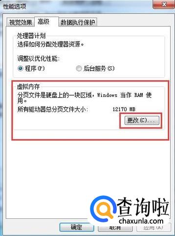 点击下更改的功能就会来到虚拟内存的界面,如图
