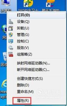 在电脑桌面上看到计算机的图标后右键点击会看到属性功能,如图