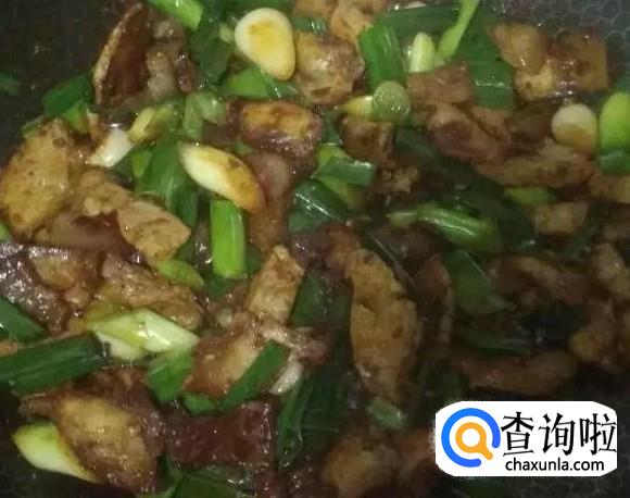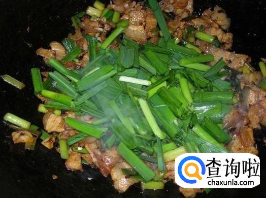 然后下青蒜进去,翻炒1分钟左右,熄火。非常浓香的回锅肉就做好了。