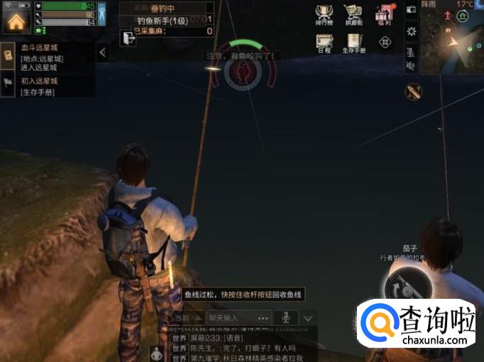 之后玩家就可以进行钓鱼了,当鱼上钩后注意收竿的时机。
