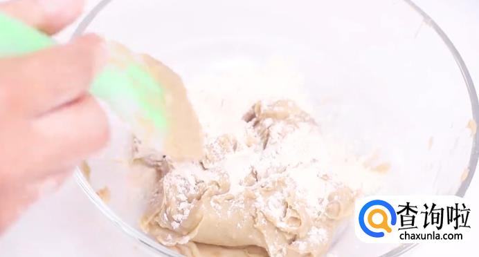 在盛出的栗子糊中倒入适量糯米粉搅拌均匀。