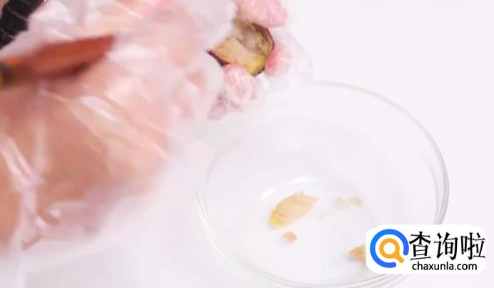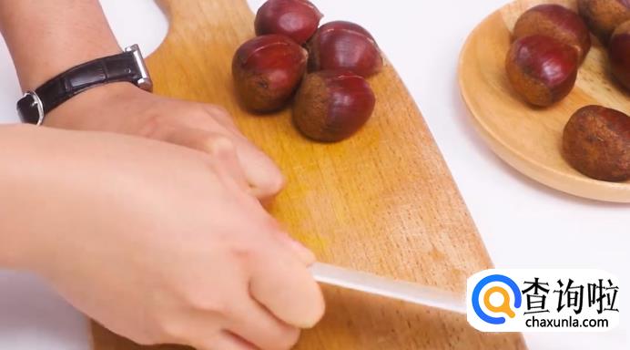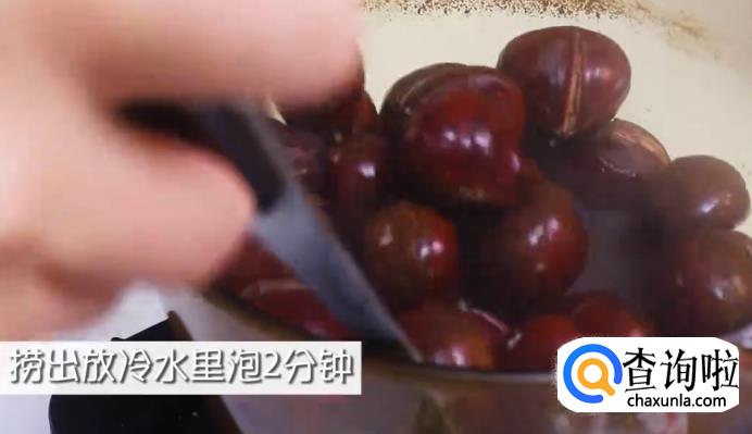 煮好后,将栗子捞出来并放入冷水里泡2分钟。