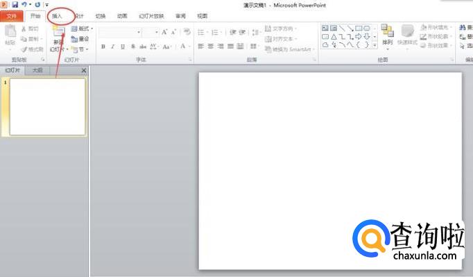 打开power point,在工具栏中找到“插入”。