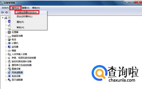 最后,点击上方的【操作】-【扫描硬件改动】,系统一般会用通用驱动重新驱动网卡,安装完成后,重新启动计算机即可。