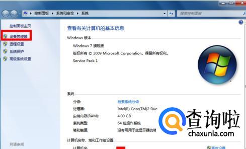 进入计算机属性页面后,在左侧的菜单栏中选择【设备管理器】。