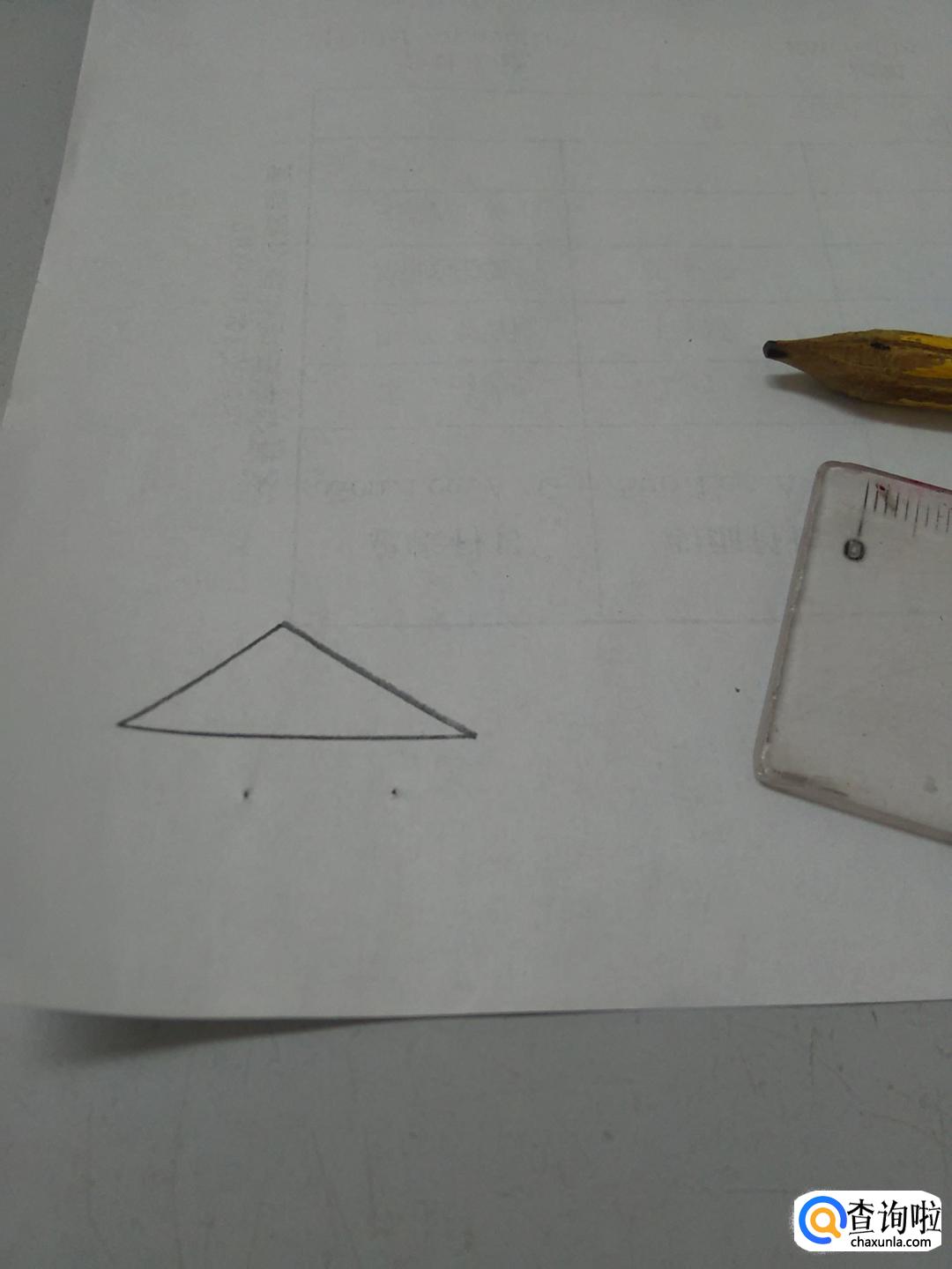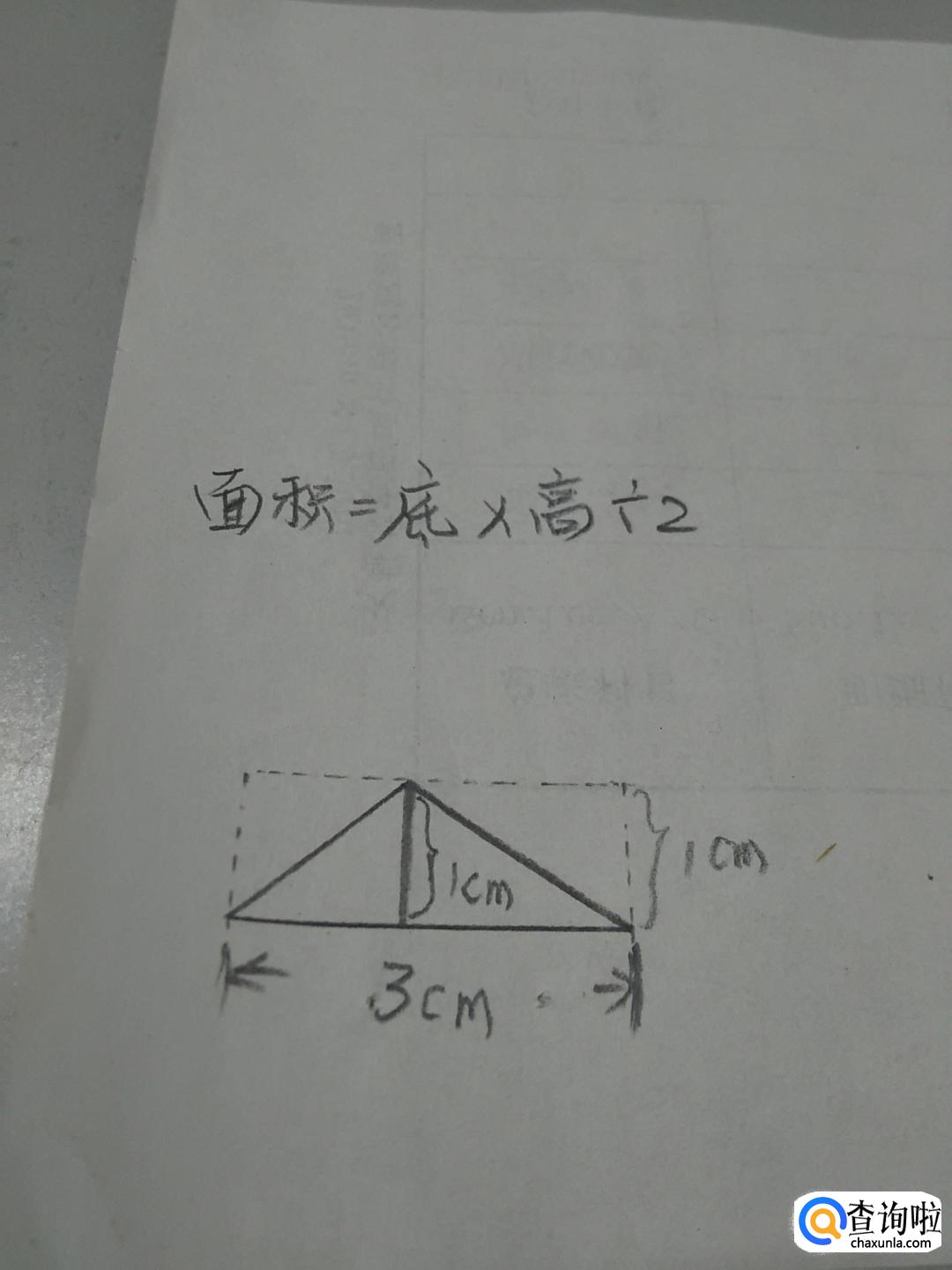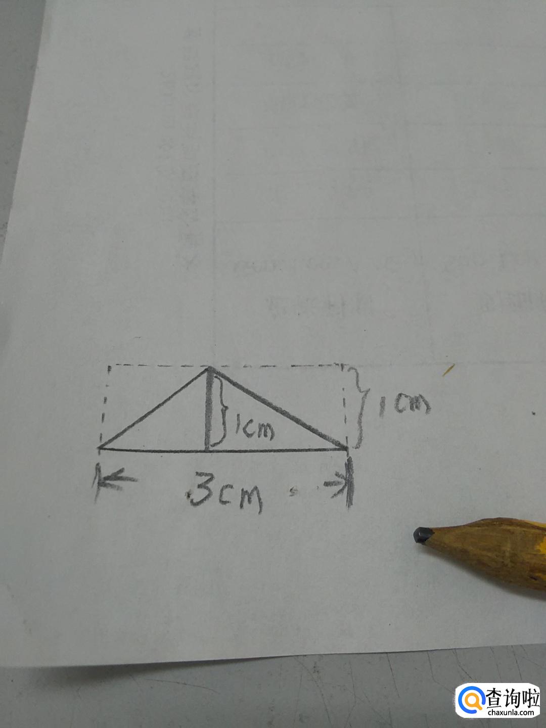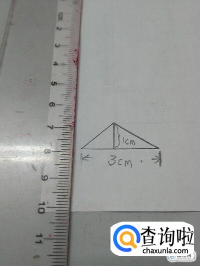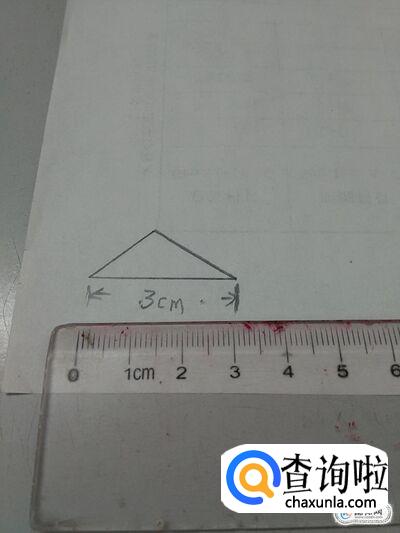 先用直尺测一下三角形底边的长,是3厘米。