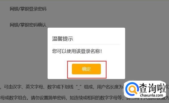 用户名可用的话,输入登录网银登录密码并确认,然后以后即可使用用户名登录农行网银账户了。
