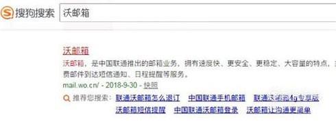 打开搜狗浏览器,在搜索框中搜索“沃邮箱”,点击沃邮箱的官网进入页面。