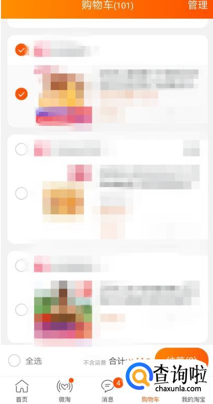 打开手机淘宝,点击进入购物车,勾选商品进行付款。