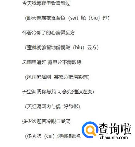 《海阔天空》是粤语歌,很多人不会说粤语,怎么办呢?可以利用谐音标注汉字和拼音,就像我们小时候学英语一样。