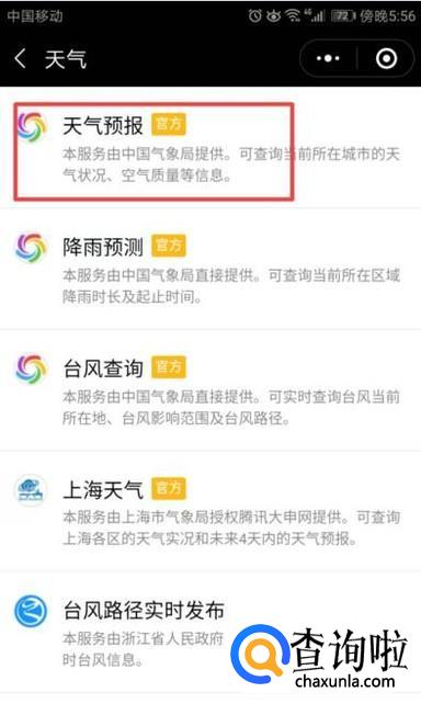 弹出的界面,我们点击天气预报;
