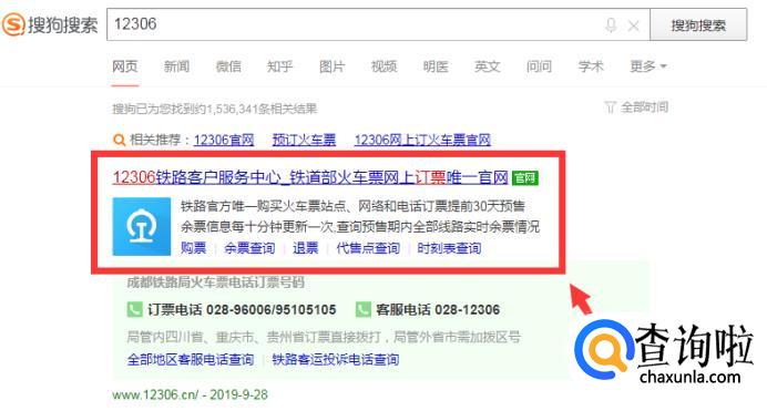 打开浏览器,搜索【12306】,进入第一个官网。