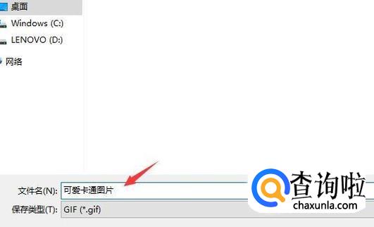 接着选择一个保存的目录,然后给图片起个名字,接着选择保存的格式,要选择gif,这时候就能将图片保存下来了。