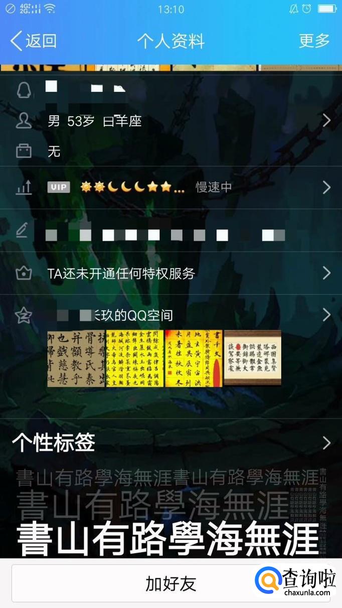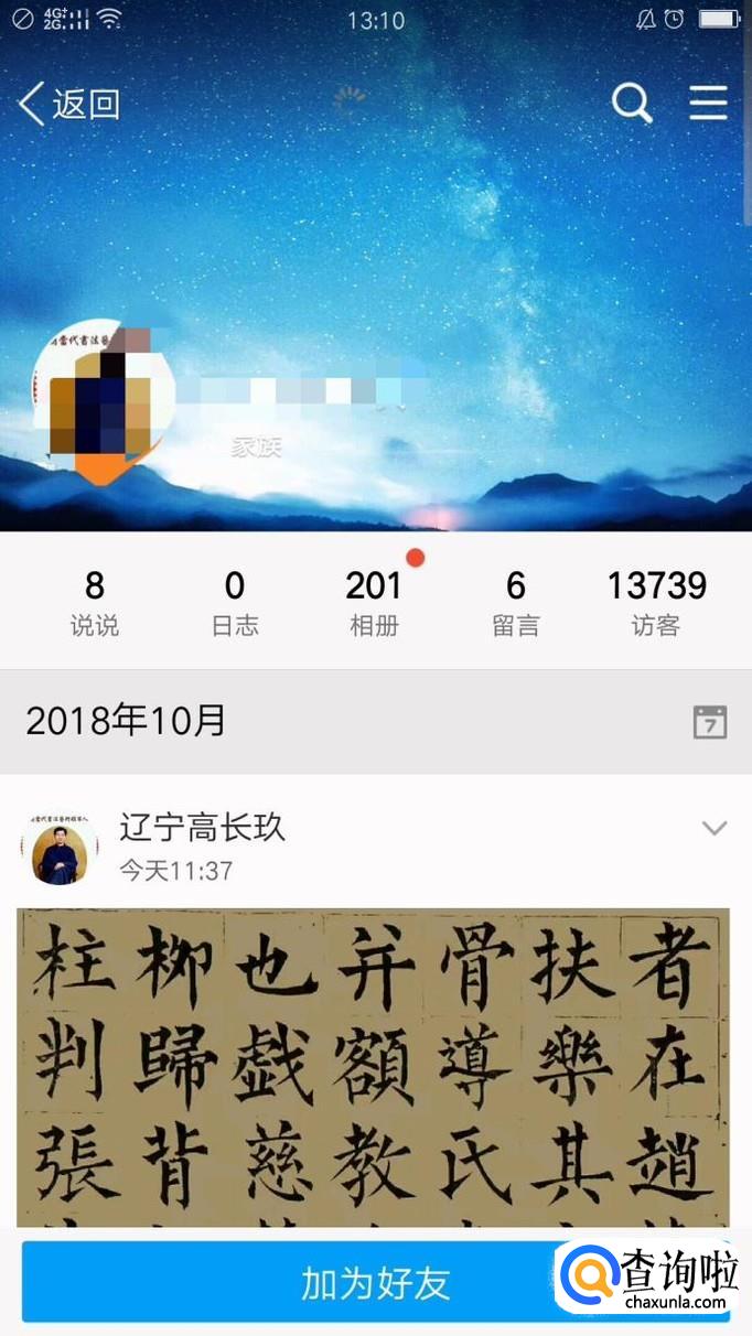 如图所示,有些人设置了非好友不能访问,那就只得加好友了。