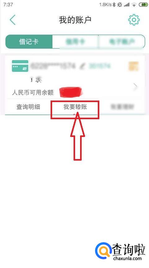 接着在app里面,点击我的账户,点击我要转账的选择。