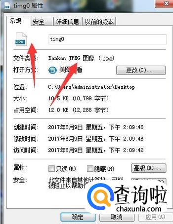 在图片属性里就可以看到图片是JPG格式。