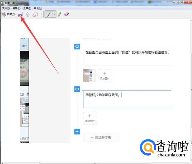 在截图页面点击上面的|“新建”就可以开始选择截图位置。