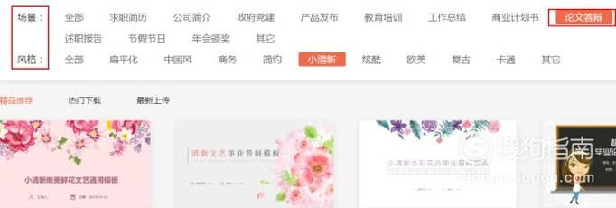 3、然后选择场景分类里面的论文答辩,再选择想要的风格。