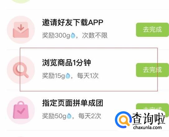 浏览商品一分钟的话也可以得到水滴,有15滴,也是挺不错的积累水滴的方式,很容易实现。