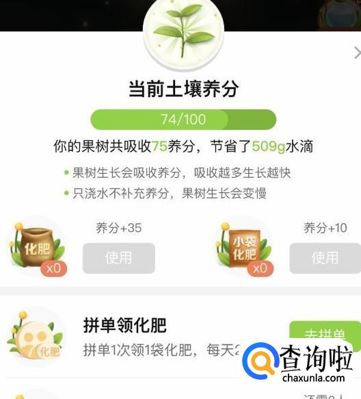 利用土壤中的养分也能节约水滴,只要在拼多多上购买商品,然后就能获得一份土壤养分,这样能节约水滴,让果树健康成长。