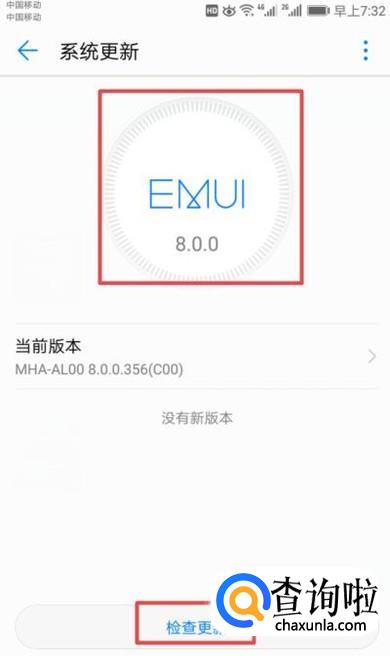 弹出的界面,我们点击检查更新,因为我已经更新到安卓系统8.0了,如图所示,所以显示没有新版本,如果有新版本的话,我们点击更新就可以进行更新了,更新完成后,就会显示安卓系统8.0了。