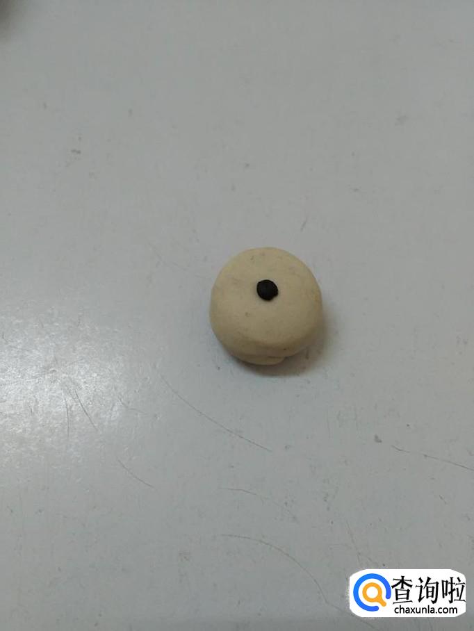 再用黑色团一个小圆球,粘在小白兔的头上,当做小白兔的眼睛。