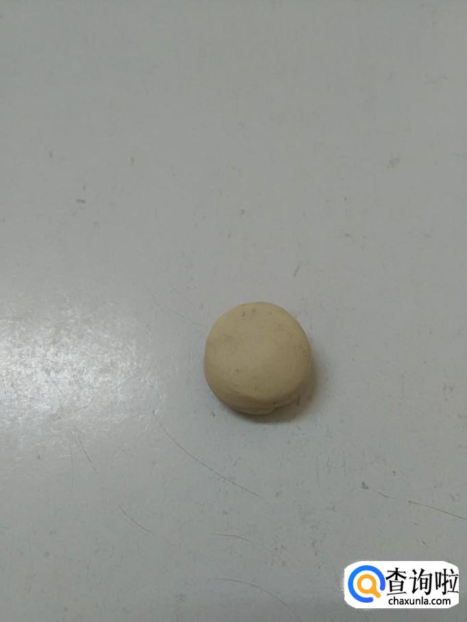 先用一块白色团成圆球,当作小白兔的头。