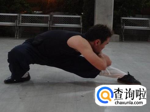 当你每一步都差不多 ,这时要开始真正挑战一字马中的横叉。俩脚随俩边下去,下到不可以下,全身尽量往前扑忍住,这是个非常有用训练方法。