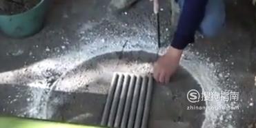 底砖抹水泥,在圈圈外径围上一个正方形的灶台形状,并留出火口。