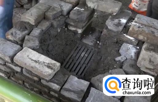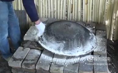 拿一口锅放在码起来的砖上方撒上白粉,再次确定灶口位置。