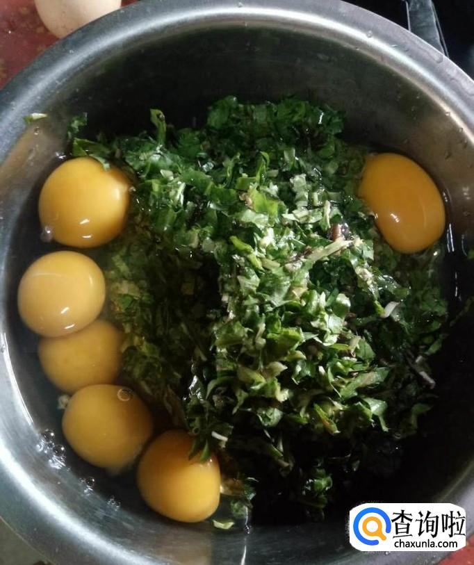 根据蒲公英的量,加入适量的鸡蛋,如下图所示。