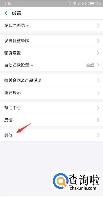 然后在设置里面会看到最后一项是其他,点击一下。