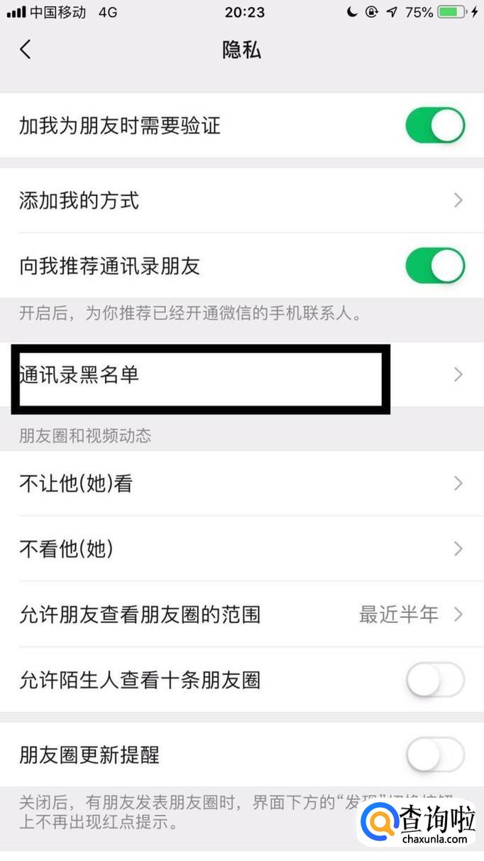 接着点击通讯录黑名单。