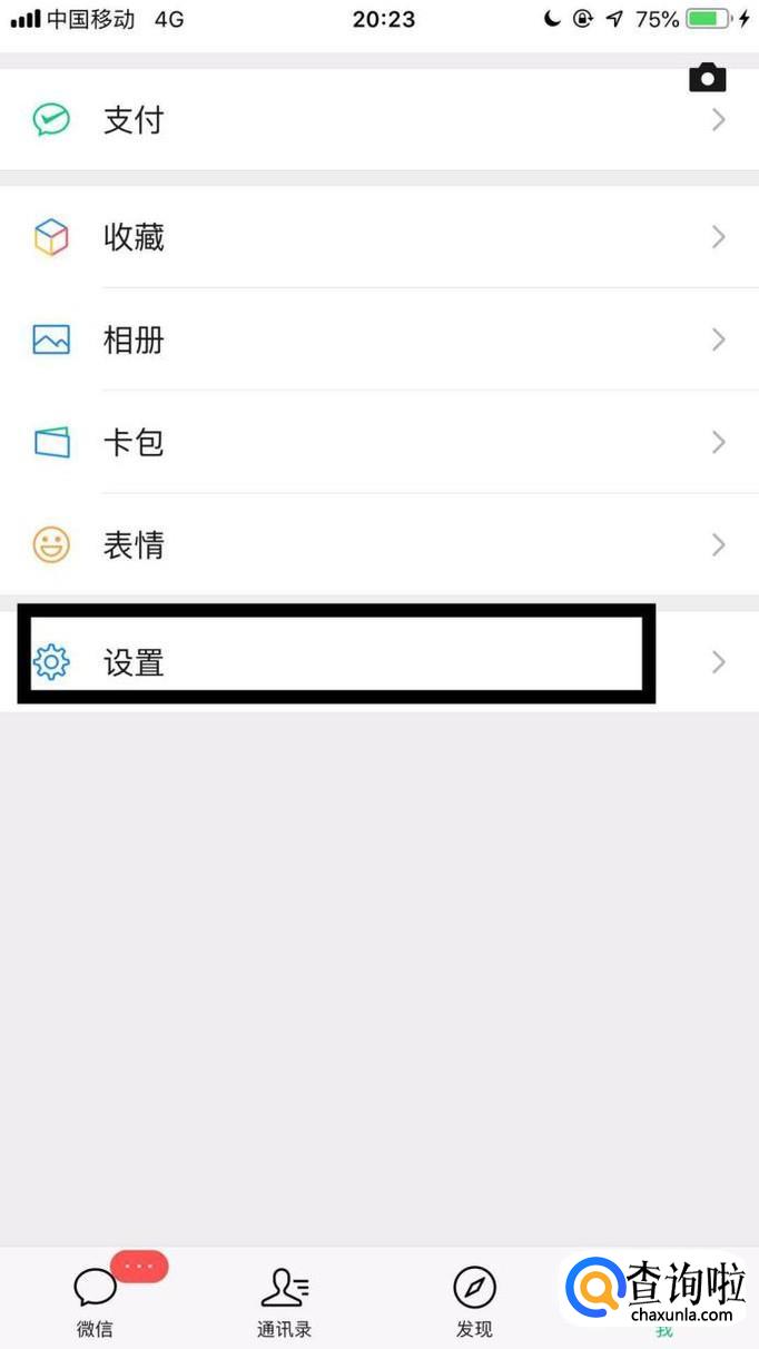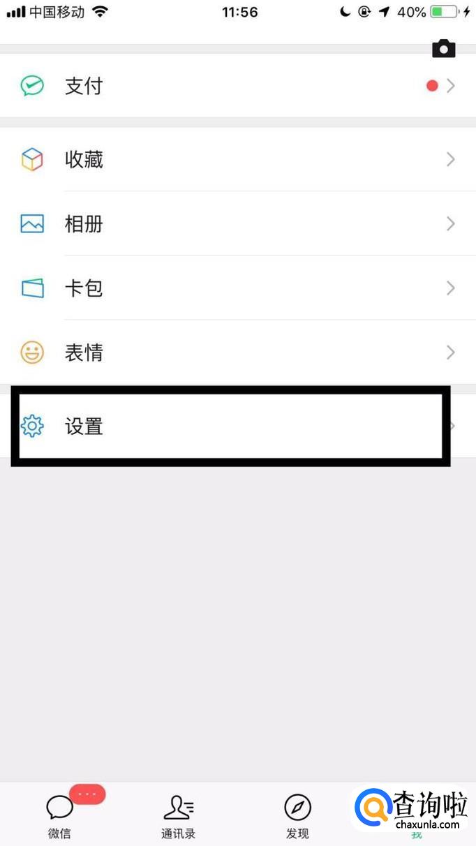 点击微信中的设置。
