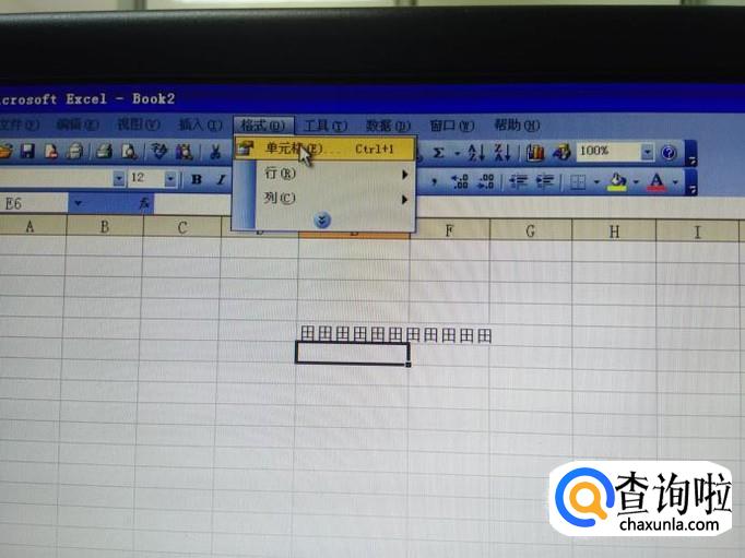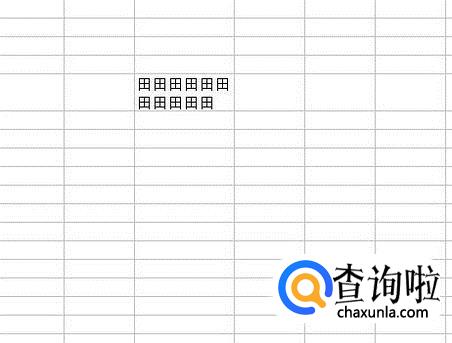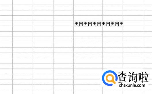打开EXCEL表格,输入一大串田字,这时,字跑到单元格外面去了。