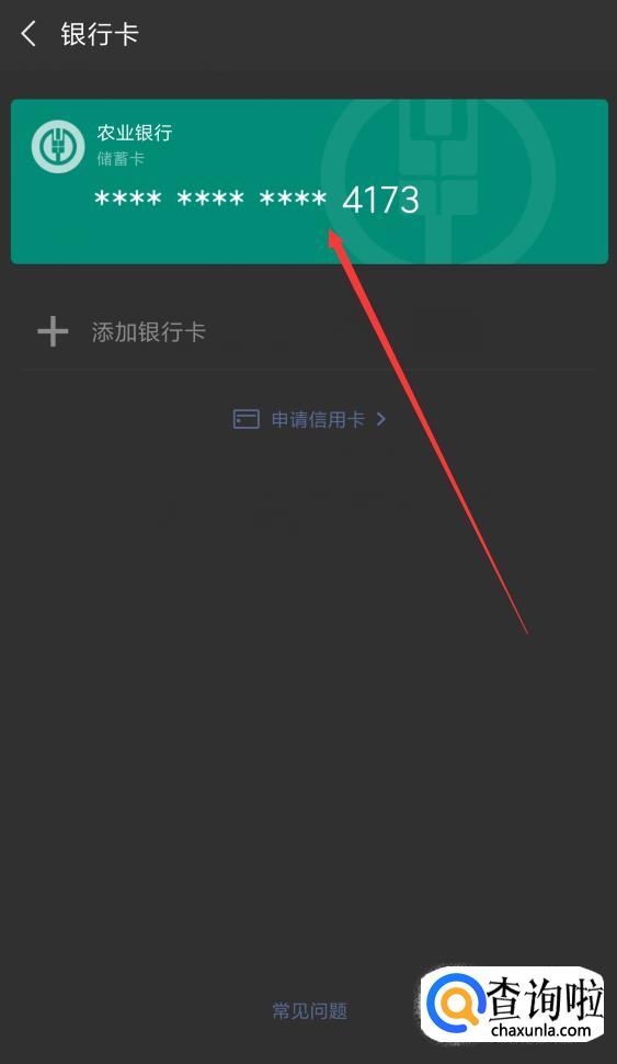接着我们可以看到自己微信所绑定的银行卡,点击它。