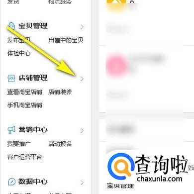 在这页面左侧这里,找到店铺管理;再把鼠标放在右侧的>按钮这里。即时弹出子菜单;再点:宝贝分类管理