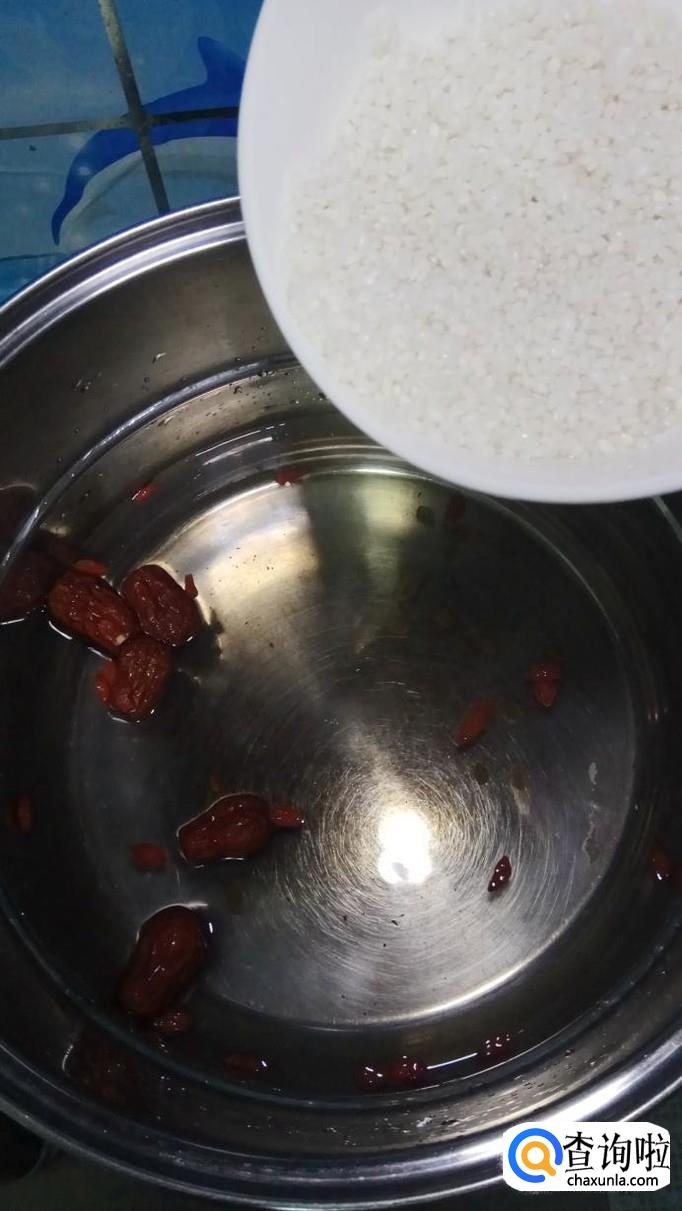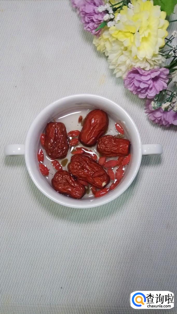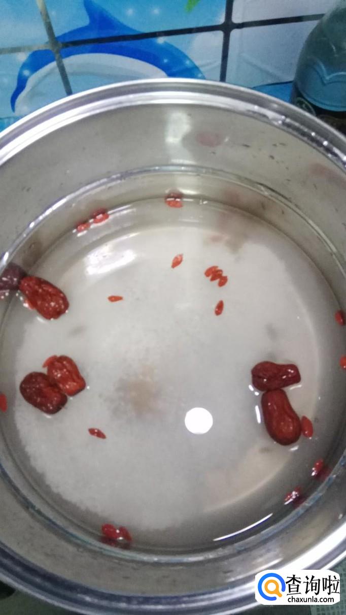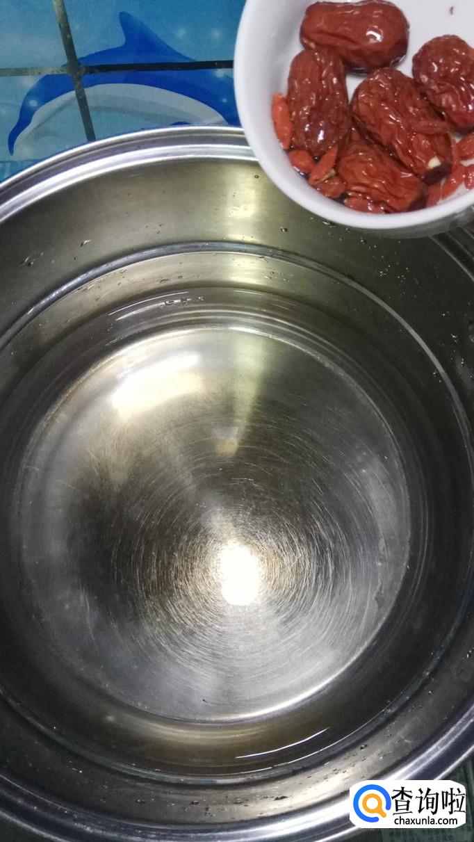 准备适量红枣和枸杞子,放在清水中泡一下,泡好之后,可以将红枣的核去掉。汤锅中加入适量的水,然后将红枣和枸杞子倒入锅中。
